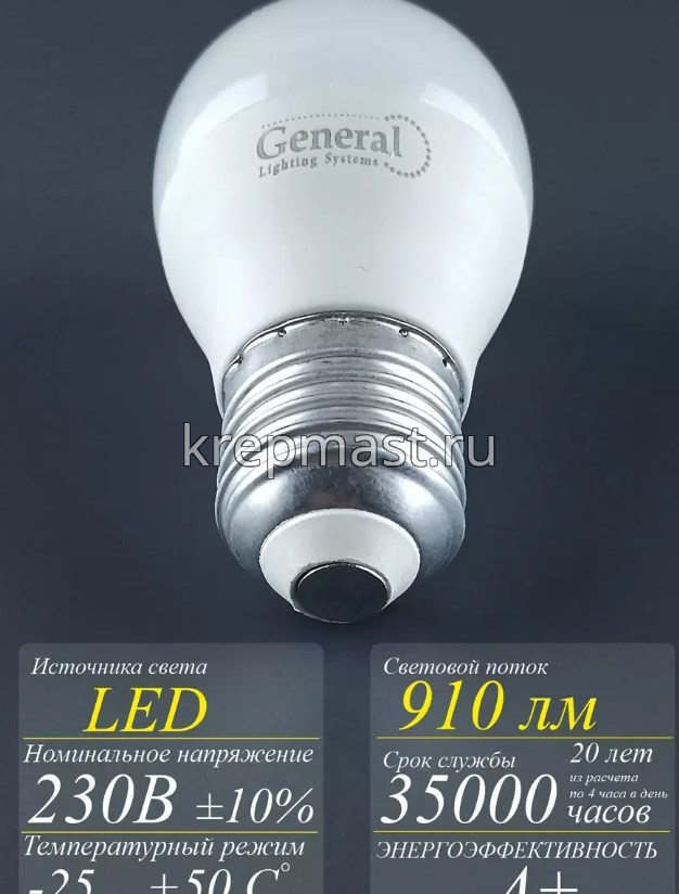 Лампа шарик 12Вт Е27 6500К General