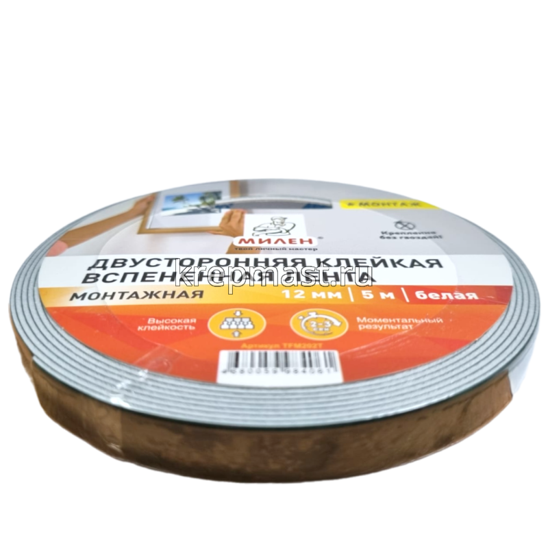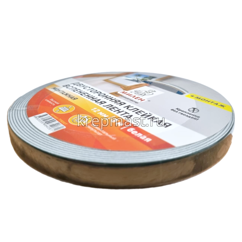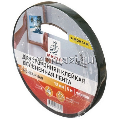 Скотч двусторонний на вспененной основе 12мм х 5м Mилен применяется, как альтернатива клею для крепления различных элементов. Двусторонний скотч ускоряет технологию монтажа, делая его более простым.