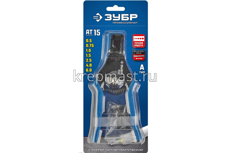 Стриппер ЗУБР АТ-15 полуавтомат. 0,5-6мм2 - предназначен для снятия изоляции с проводов.