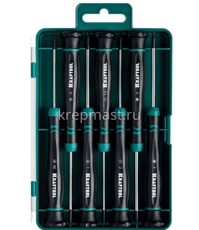 Отвертки-набор KRAFTOOL для точных работ (SL1.5/2/PH00/0/1/TX5/6) - набор профессиональных отверток используется для работ с мелкими деталями и для других точных механических работ.