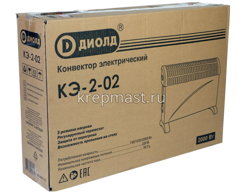 Конвектор ДИОЛД 2000Вт встроеный вентилятор - предназначен для дополнительного обогрева бытовых помещений. Обогреватель производит нагрев помещения до установленной температуры и автоматически её поддерживает. Обогреватель не предназначен для использования на открытом воздухе в сырую погоду, в ванной комнате, душевой кабине, бассейне или в других влажных средах. Обогреватель предназначен для работы под надзором.