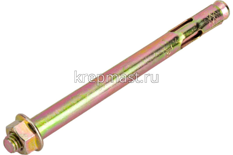 Анкер с гайкой 10 х 125 изготовлен из высокоуглеродистой стали со специальным цинковым покрытием и применяется для надежного крепления тяжеловесных конструкций к твердым основаниям из полнотелых материалов.