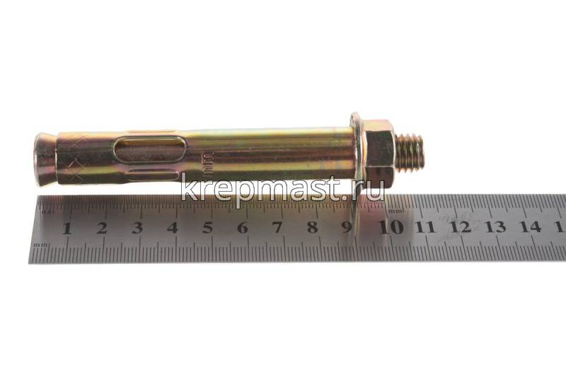 Анкер с гайкой 16 х 110 изготовлен из высокоуглеродистой стали со специальным цинковым покрытием и применяется для надежного крепления тяжеловесных конструкций к твердым основаниям из полнотелых материалов.