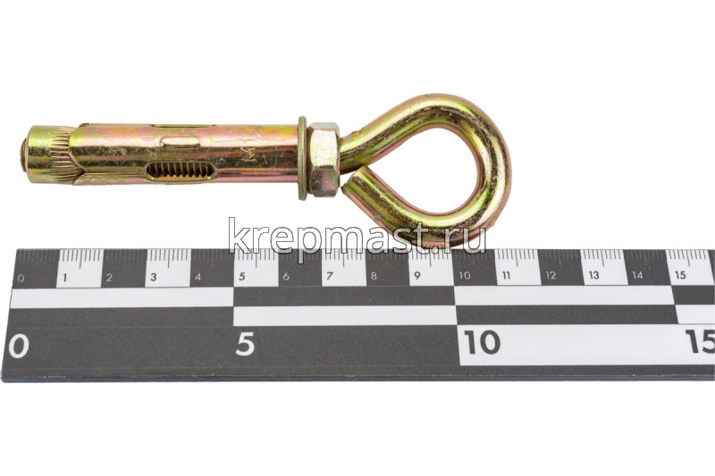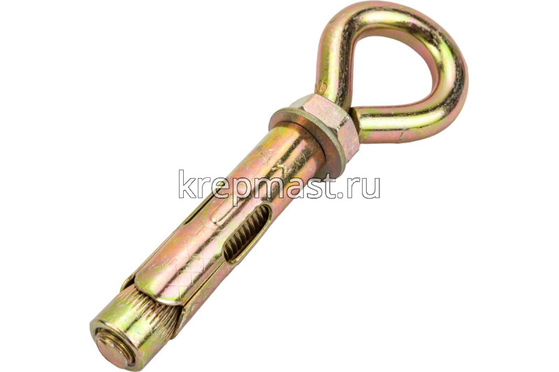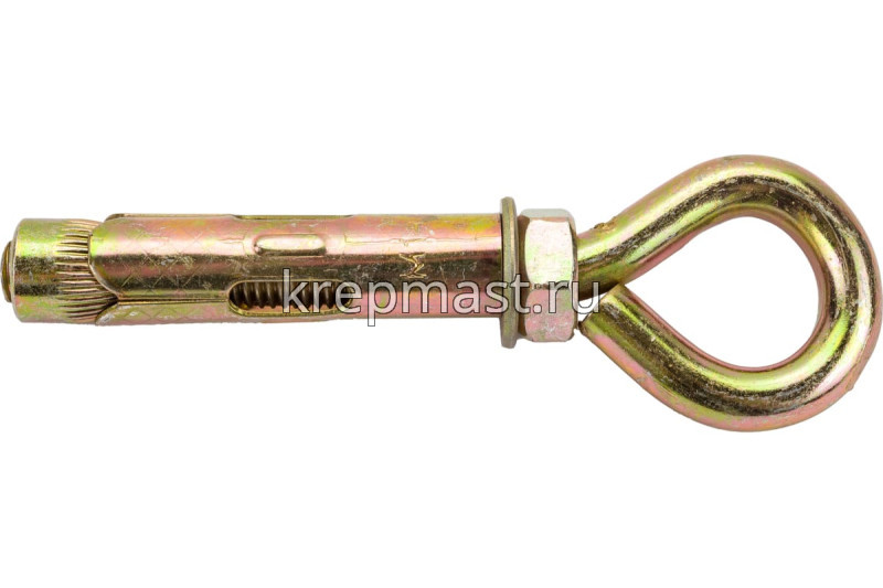 Анкерный болт с кольцом 14 х 70 является элементом крепежа для фиксации тяжелых подвесных конструкций, соединения с тросами и цепями.