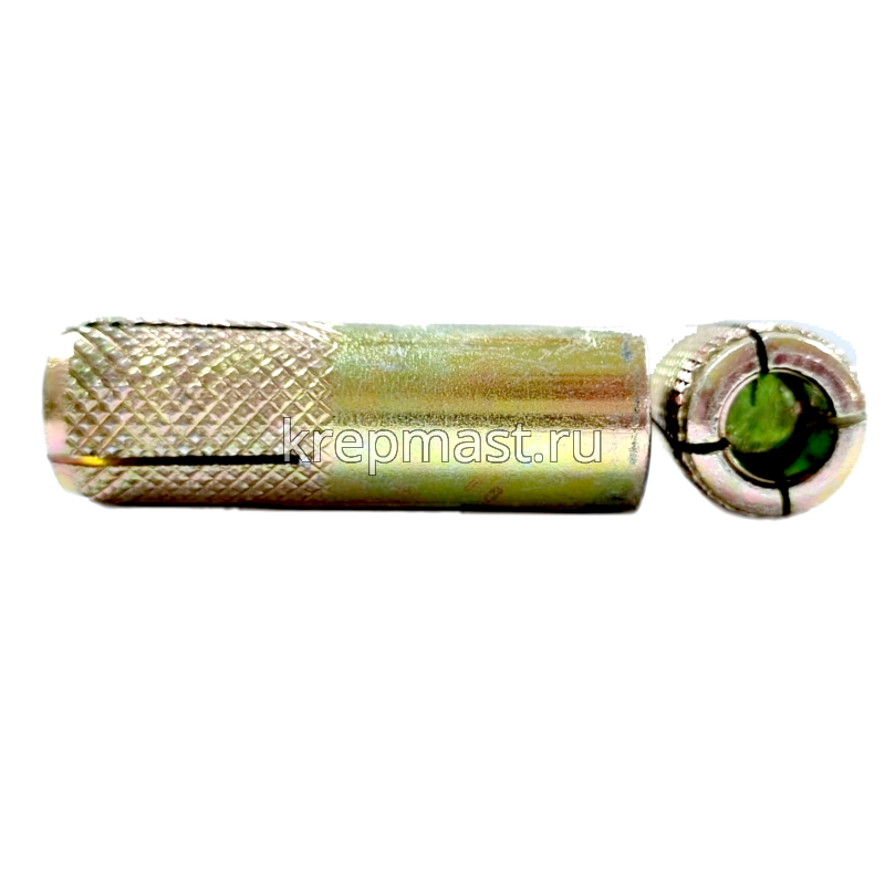 Забиваемый анкер М 14 применяется для крпеления конструкций к бетону, природному камню, кирпичу. Забивной анкер имеет внутреннюю резьбу и конусообразныый клин. Такой анкер расклинивается специальным инструментом.