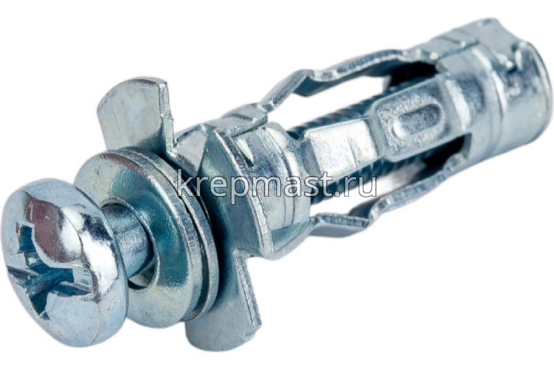 Дюбель с винтом Молли М4 х 21 — специальный вид крепежа, разработанный для работы с гипсокартоном, листами ДСП, блоками из пенобетона и другими пустотелыми материалами.