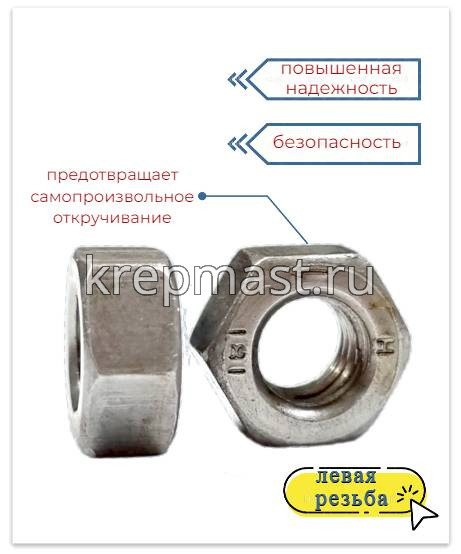 Гайка 6-гр. М 6 (1,0) DIN 934 левая резьба (LH) в Елабуге