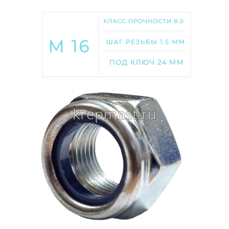 Гайка самоконтр.М16 (шаг резьбы 1,5) оц. DIN 985 в Елабуге