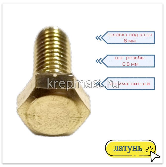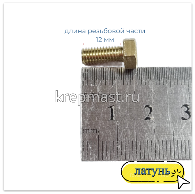 Болт М5 х 12 DIN 933 используется в случае, когда необходимо создать немагнитный узел. Латунный болт М5 применяется в приборостроении, авиации, атомной промышленности. Латунный крепеж стоек к органическим кислотам и углекислым растворам.