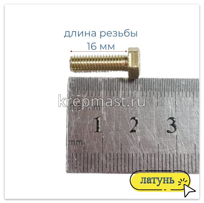 Болт 5х16 DIN 933 латунь в интернет-магазине «Мастер Крепежа» по цене 38 руб. Более 26 наименований товаров в наличии в категории Болты латунные DIN 933. Купить болт 5х16 din 933 латунь в Елабуге выгодно Вы можете on-line на нашем сайте, или отправив заявку по почте, а также по телефону или в пункте выдачи компании г. Казань, ул. Татарстан, 9, магазин "Мастер Крепежа". Доставка по Республике Татарстан и другие регионы РФ.