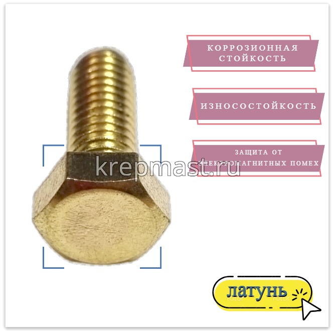 Болт 6х16 DIN 933 латунь в интернет-магазине «Мастер Крепежа» по цене 46 руб. Более 26 наименований товаров в наличии в категории Болты латунные DIN 933. Купить болт 6х16 din 933 латунь в Елабуге выгодно Вы можете on-line на нашем сайте, или отправив заявку по почте, а также по телефону или в пункте выдачи компании г. Казань, ул. Татарстан, 9, магазин "Мастер Крепежа". Доставка по Республике Татарстан и другие регионы РФ.