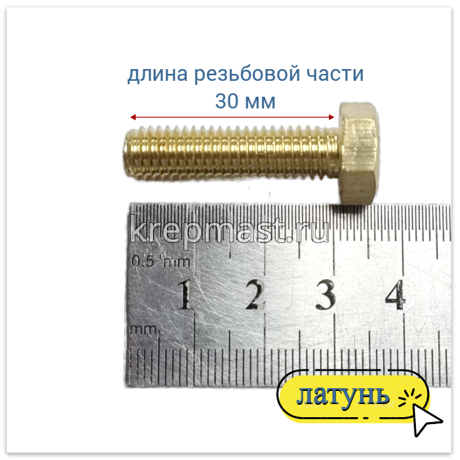 Болт 8х30 DIN 933 латунь в интернет-магазине «Мастер Крепежа» по цене 209 руб. Более 26 наименований товаров в наличии в категории Болты латунные DIN 933. Купить болт 8х30 din 933 латунь в Елабуге выгодно Вы можете on-line на нашем сайте, или отправив заявку по почте, а также по телефону или в пункте выдачи компании г. Казань, ул. Татарстан, 9, магазин "Мастер Крепежа". Доставка по Республике Татарстан и другие регионы РФ.