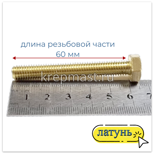 Болт 8х60 DIN 933 латунь в интернет-магазине «Мастер Крепежа» по цене 350 руб. Более 26 наименований товаров в наличии в категории Болты латунные DIN 933. Купить болт 8х60 din 933 латунь в Елабуге выгодно Вы можете on-line на нашем сайте, или отправив заявку по почте, а также по телефону или в пункте выдачи компании г. Казань, ул. Татарстан, 9, магазин "Мастер Крепежа". Доставка по Республике Татарстан и другие регионы РФ.