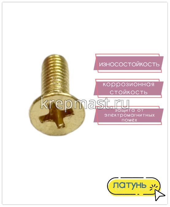 Винт потай 4,0 х12 DIN 965 латунь в Елабуге