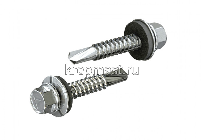 Кровельный саморез с шайбой и резиновой прокладкой EPDM DIN 7504 К 6,3 х 150 по металлу - представляет из себя саморез с шестигранной головкой, фланцем и резиновой прокладкой для эффективного прижатия листового металла к основанию.