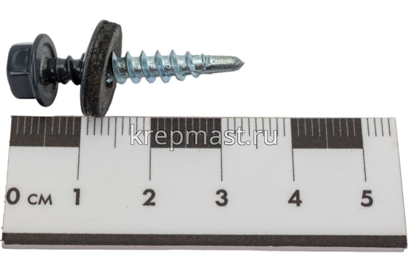 Кровельный саморез окрашенный с шайбой и резиновой прокладкой EPDM DIN 7504 4,8 х 29 по дереву RAL 7024 (цвет серый графит) - представляет из себя саморез с шестигранной головкой, фланцем и резиновой прокладкой для эффективного прижатия листового металла к основанию.