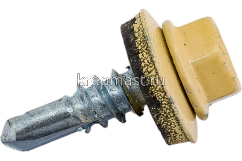 Кровельный саморез окрашенный с шайбой и резиновой прокладкой EPDM DIN 7504 5,5 х 19 по металлу RAL 1014 (цвет бежевый) - представляет из себя саморез с шестигранной головкой, фланцем и резиновой прокладкой для эффективного прижатия листового металла к основанию.