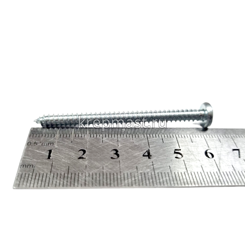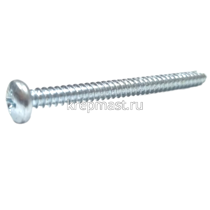 Саморез по металлу с полусферической головкой и острым концом DIN 7981 4.8 x 60 применяется для крепления стальных и других листовых материалов (дерево, фанера) к металлическим и деревянным несущим конструкциям.