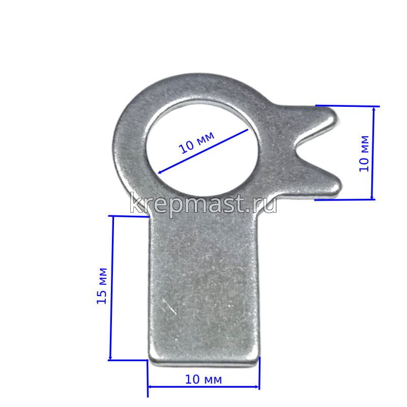 Шайба стопорная ГОСТ 13463 ф. 10 оц. - стопорная шайба с двумя лапками, применяется совместно с крепежом с метрической резьбой (болтами, шпильками, винтами) или шурупами и саморезами. Шайба ГОСТ 13463-77 производится из углеродистой стали.