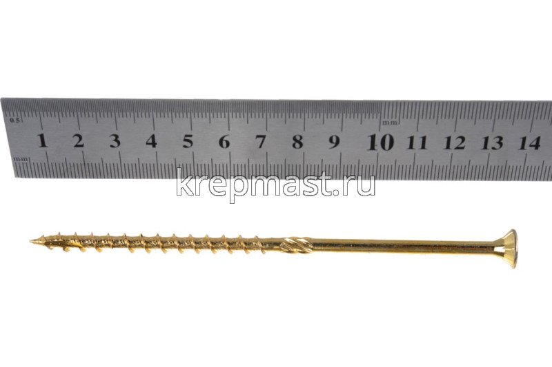 Конструкционный саморез по дереву с потайной головкой 6,0 х 140 совершает в одно движение такие операции, как накернивание, засверливание, зенковка и вворачивание.