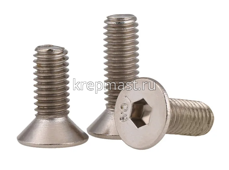 Винт с потайной головкой и внутренним шестигранником DIN 7991 М 8 х 50 класс прочности 10,9 применяется для крепления в зенкованное отверстие с метрической резьбой в любые металлы и твердые пластмассы.