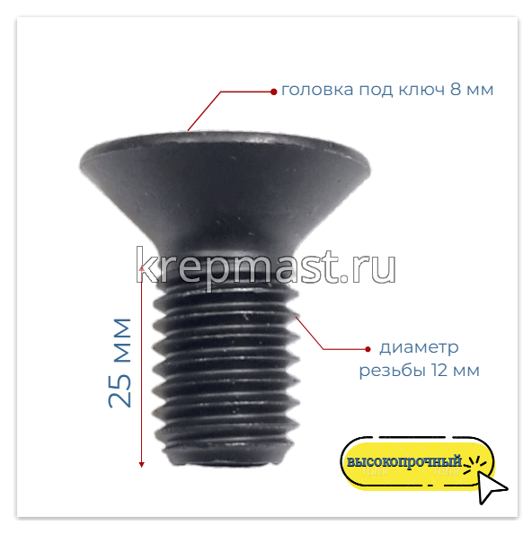 Винт с внут. шестиг. потай голов. 12х 25 кл.пр.10,9 DIN 7991 ЧЕРНЫЙ в Елабуге