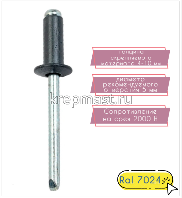 Заклёпка алюминий/сталь 4,8х12 RAL 7024 в Елабуге