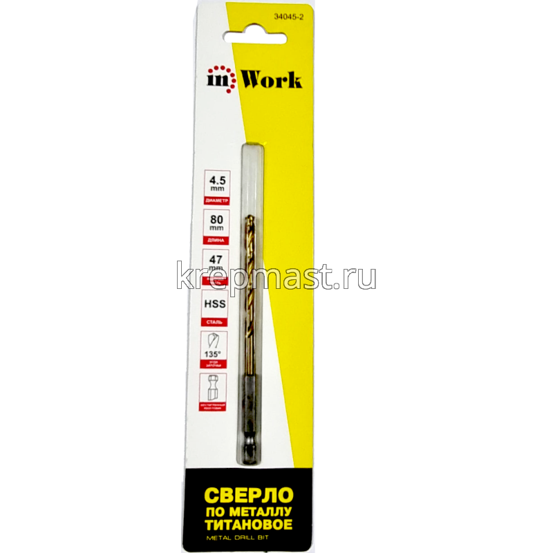Сверло по металлу 4,5 мм U-образ.хвост.под биту