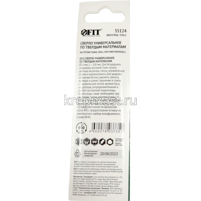 Сверло универсальное 6х100мм (сталь, чугун, цв.мет, стекло, керамогранит) в интернет-магазине «Мастер Крепежа» по цене 164 руб. Более 13 наименований товаров в наличии в категории СВЕРЛА универсальные (опалубочные). Купить сверло универсальное 6х100мм (сталь, чугун, цв.мет, стекло, керамогранит) в Елабуге выгодно Вы можете on-line на нашем сайте, или отправив заявку по почте, а также по телефону или в пункте выдачи компании г. Казань, ул. Татарстан, 9, магазин "Мастер Крепежа". Доставка по Республике Татарстан и другие регионы РФ.