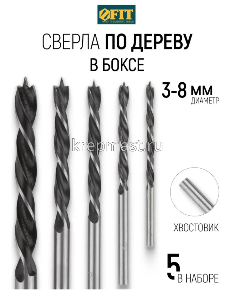 Набор сверел по дереву 5шт спираль FIT (3-4-5-6-8мм) в Елабуге