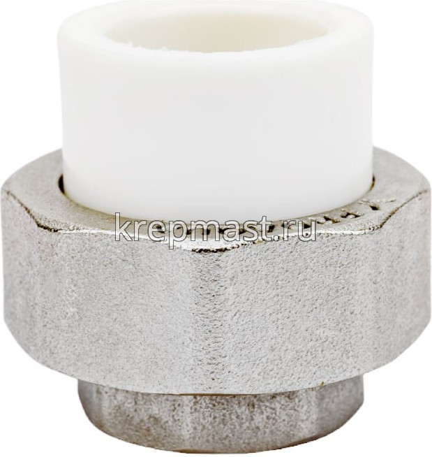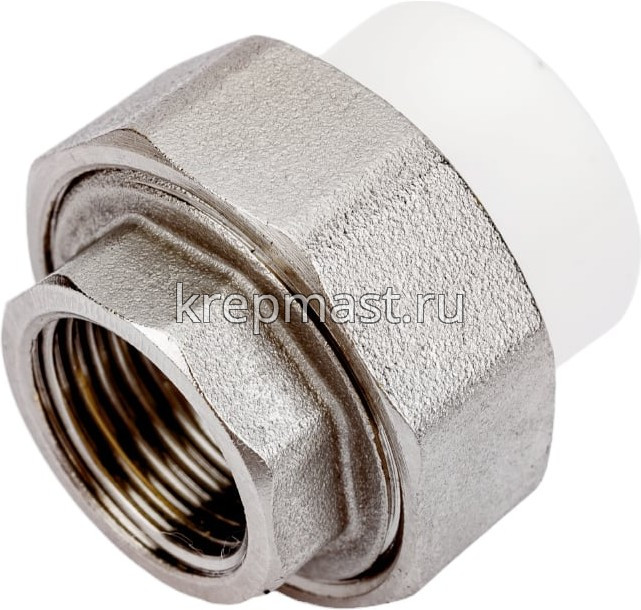 Комбинированная разъемная муфта (американка) ВР D 20-1/2 п/п - разъемная муфта состоит из двух элементов, один из которых приваривается к полипропиленовой трубе посредством раструбной сварки, другой - соединяется с оборудованием или арматурой при помощи трубной резьбы.