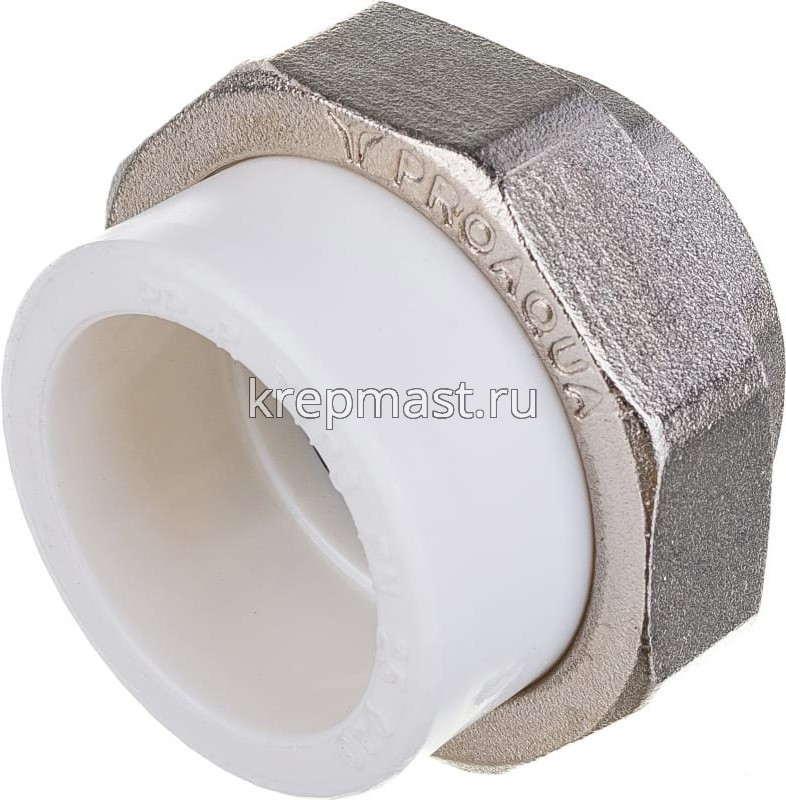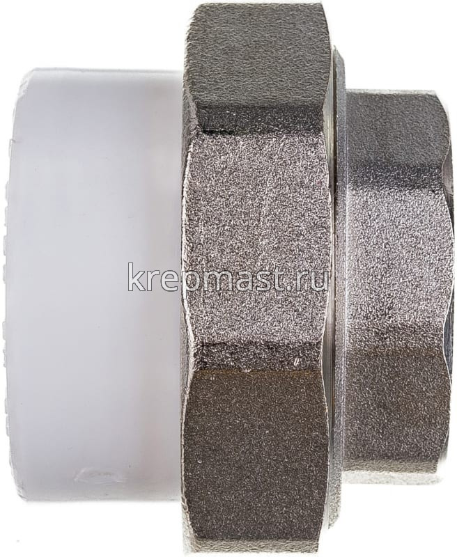 Комбинированная разъемная муфта (американка) ВР D 40- 1 1/4 п/п - разъемная муфта состоит из двух элементов, один из которых приваривается к полипропиленовой трубе посредством раструбной сварки, другой - соединяется с оборудованием или арматурой при помощи трубной резьбы.