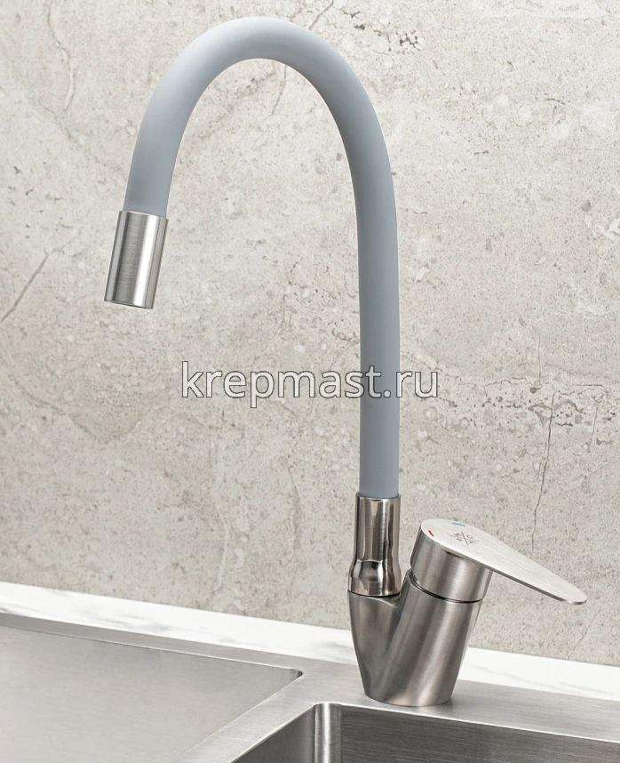 Смеситель для кухни SUS126GY-016F с высоким гибким изливом нержавеющий - удачно дополнит мойку любого размера и конфигурации.