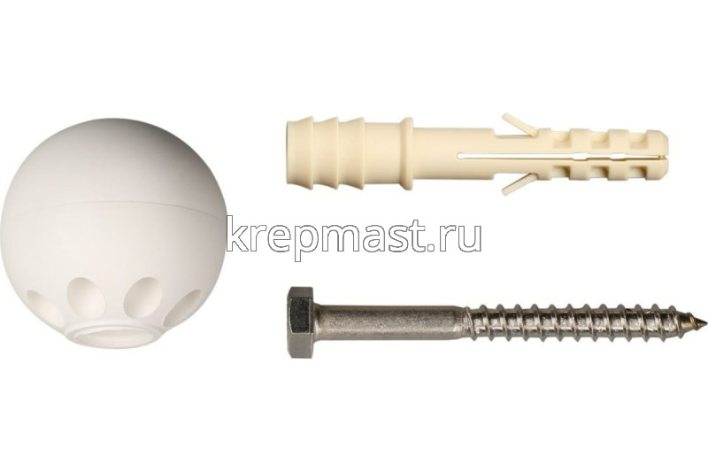 Ограничитель дверной ЕВРОПАРТНЕР белый - комплект, состоящий из нейлонового дюбеля, установочного нержавеющего шурупа и декоративного сферического ограничителя различных расцветок. Ограничитель диаметром 35 мм изготовлен из износостойкого эластомера. Крепление к полу осуществляется при помощи шурупа и дюбеля.