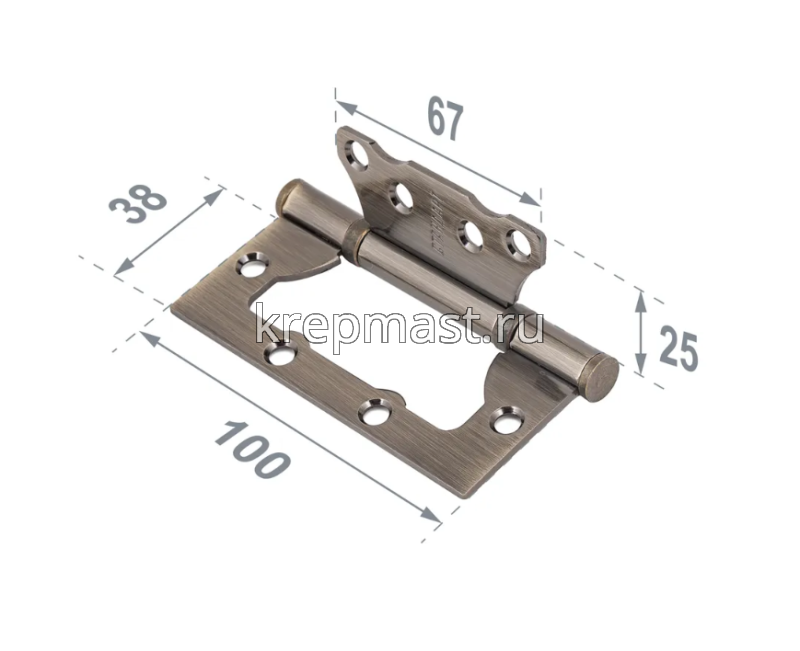 Петля универс. БЕЗ ВРЕЗКИ 100х75х2,5 бронза используется при установке окон и других легких конструкций. Они изготовлены из инструментальной стали, благодаря чему обладают прочностью и устойчивостью к нагрузкам.