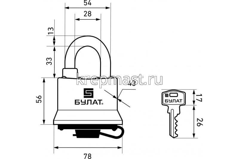 | Внутренняя высота дужки (в закрытом состоянии), мм | 33 |