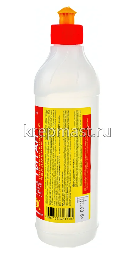 Универсальный полимерный клей РУССКИЙ ТИТАН (морозоустойчивый; 0.5 л) предназначен для наклеивания изделий из пенополистирола, экструдированного пенополистирола, глазури, паркета, паркетной мозаики, керамики, напольных ковровых покрытий, дерева, дерево-подобных материалов, пробки, искусственной кожи, бумаги, ткани. Применяется для склеивания вышеперечисленных материалов друг с другом и в разных комбинациях, а также для приклеивания этих материалов к бетонным, цементно- известковым, гипсовым, штукатурным и кирпичным поверхностям. Клей создает водонепроницаемый шов.